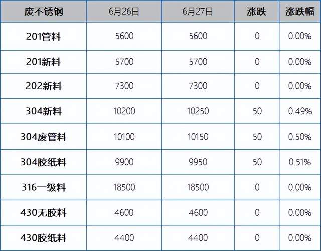 較昨日早間,今日早間市場市場報價201報價部分持平,部分上漲30-50元/噸;304報價部分持平,部分上漲50-100元/噸,目前主流報價區間:201新料在5600-5700元/噸;304新料在10150-10250元/噸。